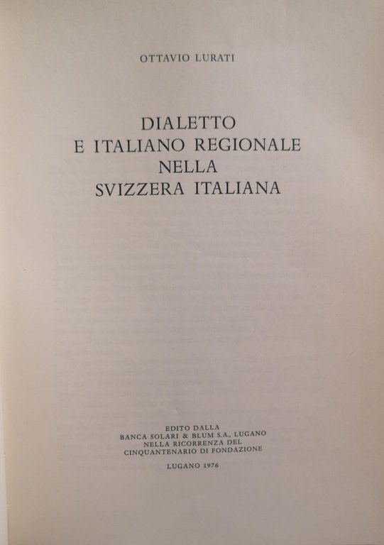DIALETTO E ITALIANO REGIONALE NELLA SVIZZERA ITALIANA. | Libri antichi e moderni | LURATI Ottavio