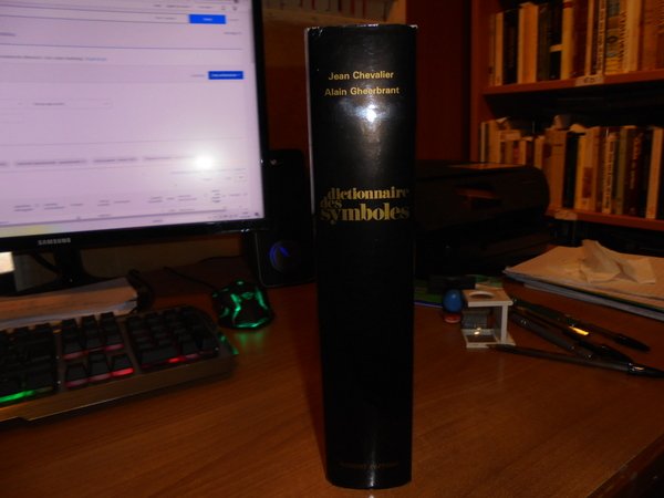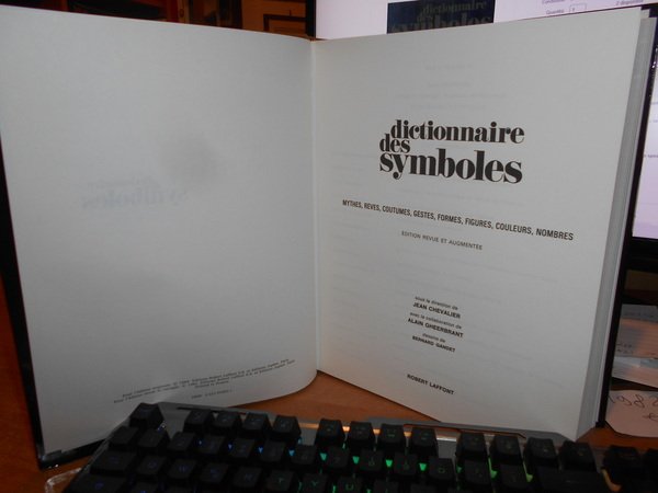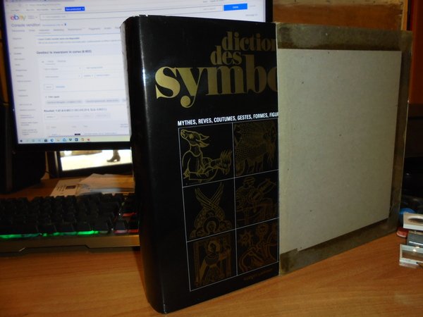 Chevalier - Gheerbrant. Paris, Robert Laffont, 1982. Dictionnaire des Symboles. Mythes, Reves, Coutumes, Gestes, Formes, Figures, Couleurs, Nombres. In-4°, tela edit. con titoli in oro sul piano e al dorso, sovracopertina. xxxi, 842 pp. con numerose illustrazioni in bianco e nero nel testo. Come nuovo con astuccio in cartoncino muto. Uff. stanzetta mob. a destra