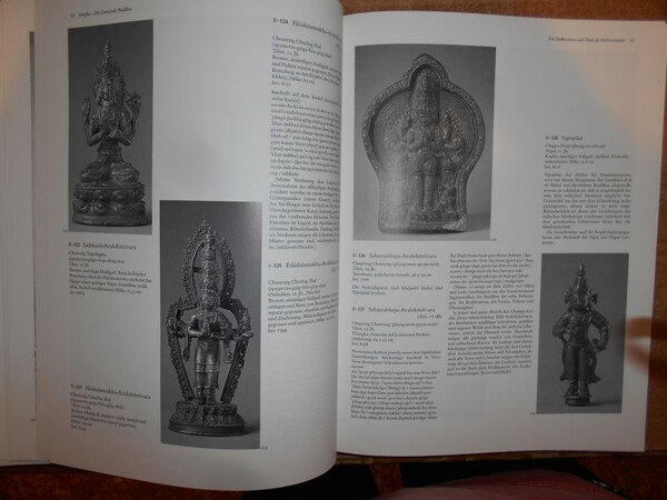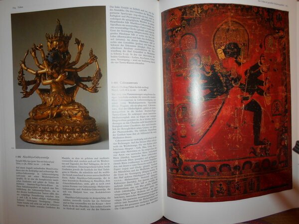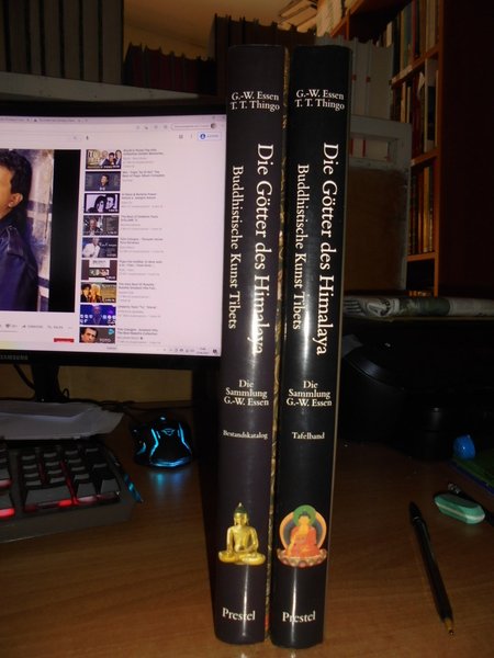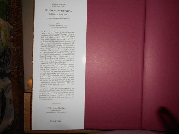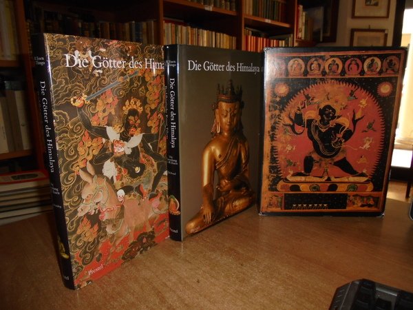 DIE GÖTTER DES HIMALAYA. BUDDHISTISCHE KUNST TIBETS. DIE SAMMLUNG GERD-WOLFGANG ESSEN. TAFELBAND. ESSEN GERD WOLFGANG & THINGO TSERING TASHI (DALAI LAMA, GELEITWORT & GOEPPER ROGER, INTROD.) Germany, Prestel-Verlag, 1989. 2 volumi in-4°, tela edit. con sovracopertine ill. a col. 299 pp. con numerose illustrazioni fotografiche a colori anche a piena pagina.; 308 pp. con numerose illustrazioni fotografiche in bianco e nero. Libri come nuovi. Astuccio con lievi segni d' uso. Uff. stanzetta mob. a destra.