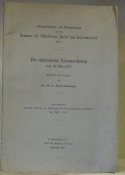 Die italienische Prisenordnung vom 25. März 1917. Abhandlungen und Mitteilungen aus dem Seminar für Öffentliches Recht und Kolonialrecht. Heft 6. | Libri antichi e moderni | Rauchhaupt, W. V.