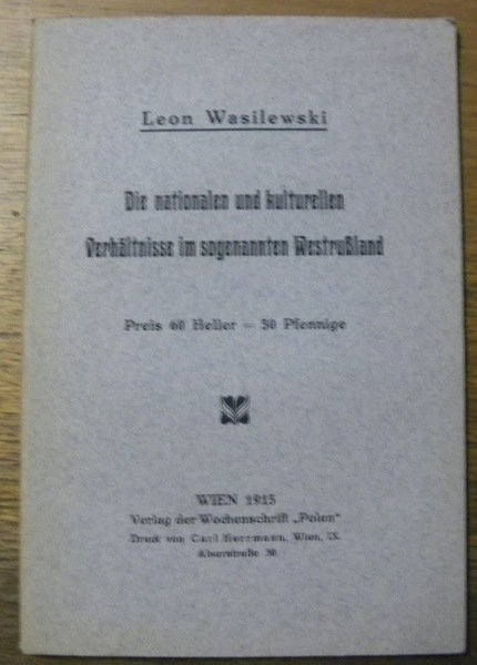 Die nationalen und kulturellen Verhältnisse im sogenannten Westrussland. | Libri antichi e moderni | Wasilewski, Leon.