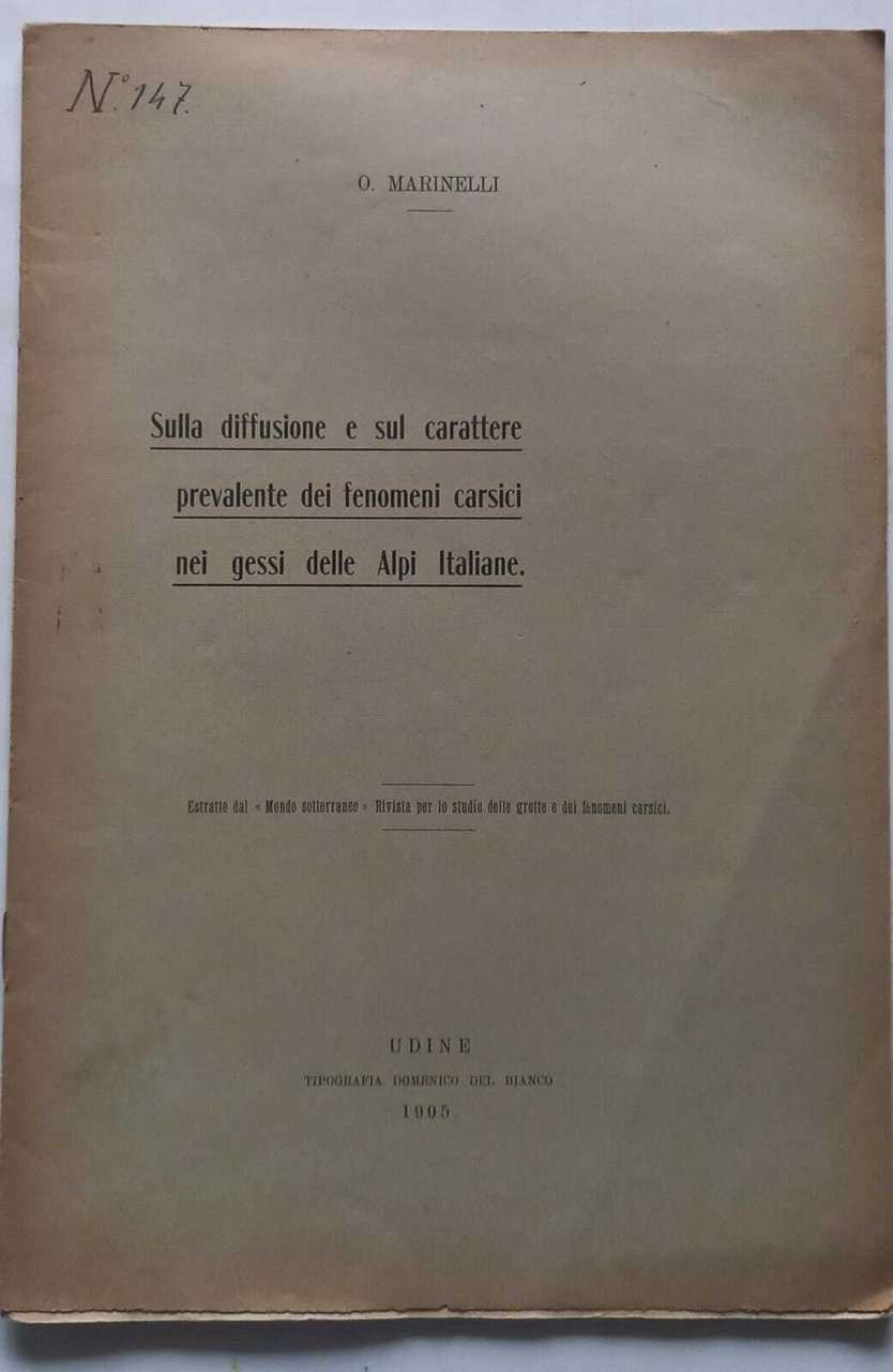 Diff.ne e carattere prevalente fen. carsici nei gessi Alpi Italiane. (Estratto) | Libri antichi e moderni | Olinto Marinelli, ,Olinto Marinelli
