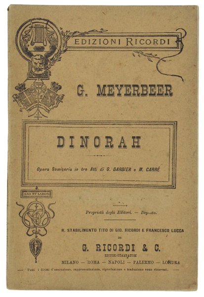 DINORAH ossia IL PELLEGRINAGGIO A PLOERMEL. Opera semiseria in tre atti. | Libri antichi e moderni | Barbier G., Carré M., Meyerbeer Giacomo.