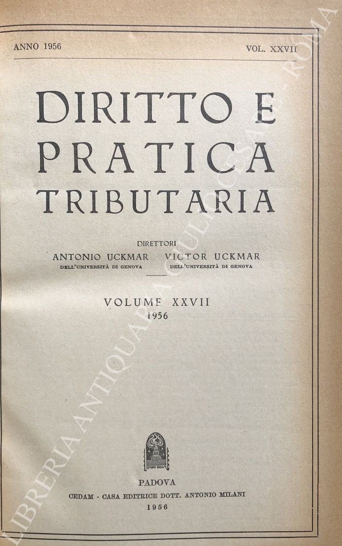 Diritto e Pratica Tributaria. Diretta da Victor Uckmar. Vol. XXVII - 1956 | Libri antichi e moderni | Autori Vari