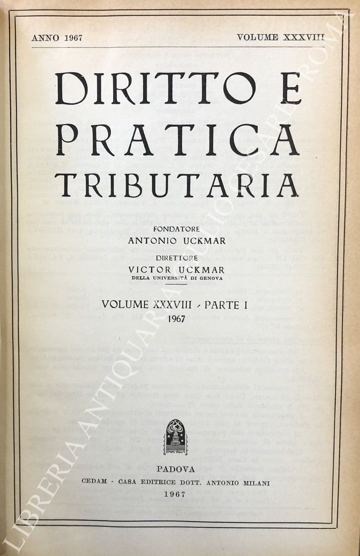 Diritto e Pratica Tributaria. Diretta da Victor Uckmar. Vol. XXXVIII - 1967 | Libri antichi e moderni | Autori Vari