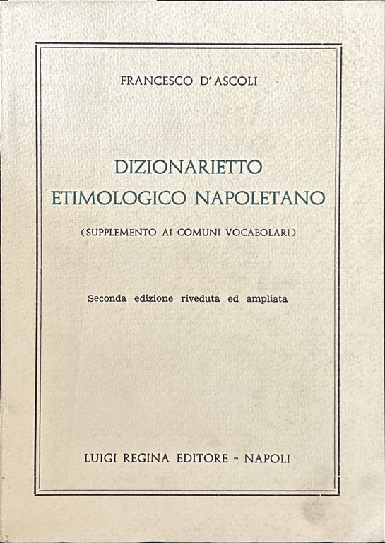 Dizionarietto etimologico napoletano (supplemento ai comuni vocabolari) | Libri antichi e moderni | Francesco D'Ascoli