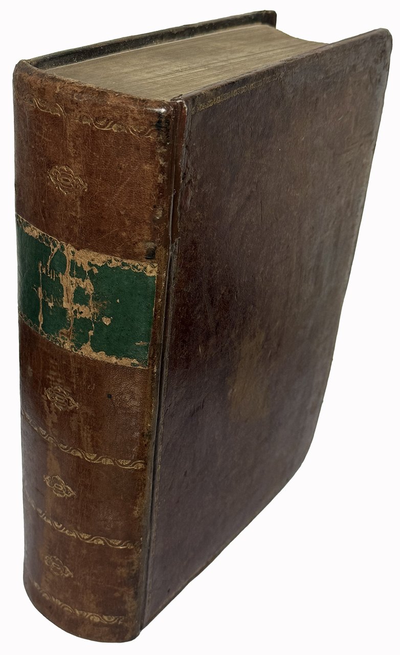 4to (265x180 mm). 25, [1 blank], 1508 pp. Page [812] is a blank. Half title, Armenian title and Italian title. Woodcut vignettes on the title pages. Contemporary full leather gilt, lettering piece on spine, gilt edges, marbled endleaves (worn and rubbed, joints and corner partly restored). Small stain to the upper outer corner of the first leaves, some scattered foxing, all in all a very good copy.