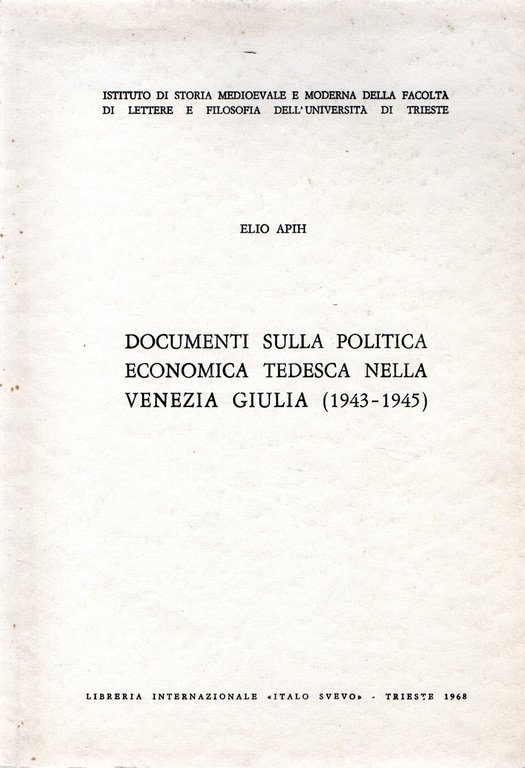 Documenti sulla politica economica tedesca nella Venezia Giulia (1943-1945) | Libri antichi e moderni | Apih, Elio, ,Apih, Elio