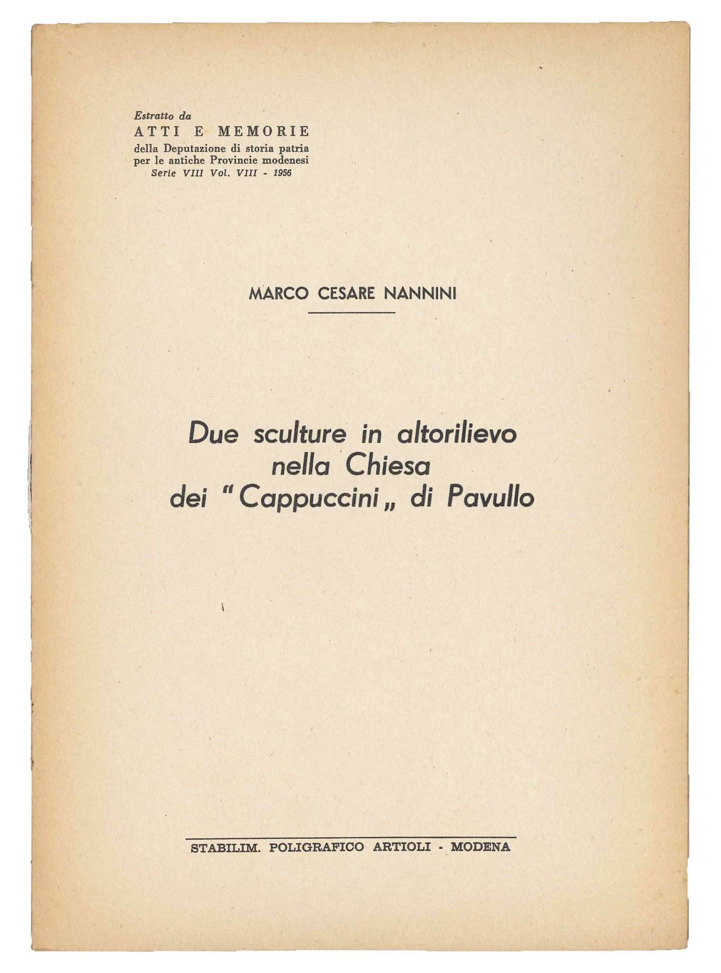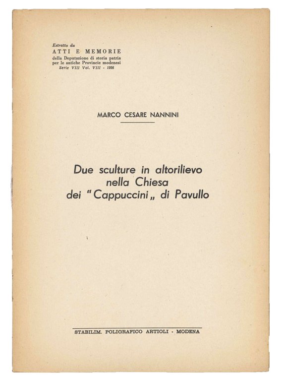 Due sculture in altorilievo nella chiesa dei Cappuccini di Pavullo. | Libri antichi e moderni | NANNINI, Marco Cesare