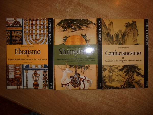 Fernando Joannes. Bhikkhu Satori Bhante. Tchao Yun-Koen. Milano, Rizzoli, 1997. EBRAISMO. SHINTOISMO. CONFUCIANESIMO. 3 volumi in-16° grande, cartoncino edit. ill. a col. 95, (1) pp.; 96 pp.; 96 pp. Volumi corredati da numerose illustrazioni a colori nel testo. Neg. esot. mob. 101 entro busta trasp.