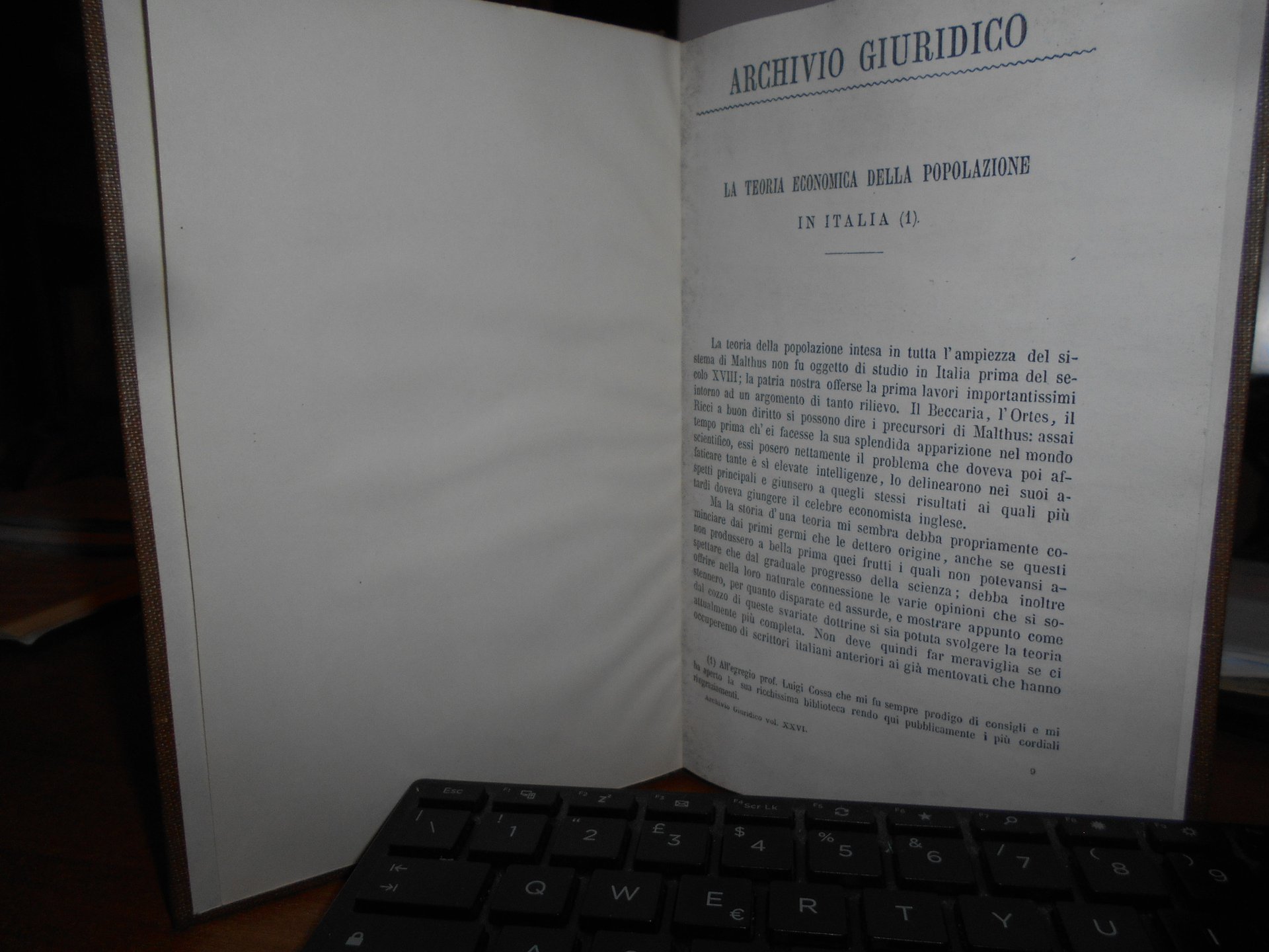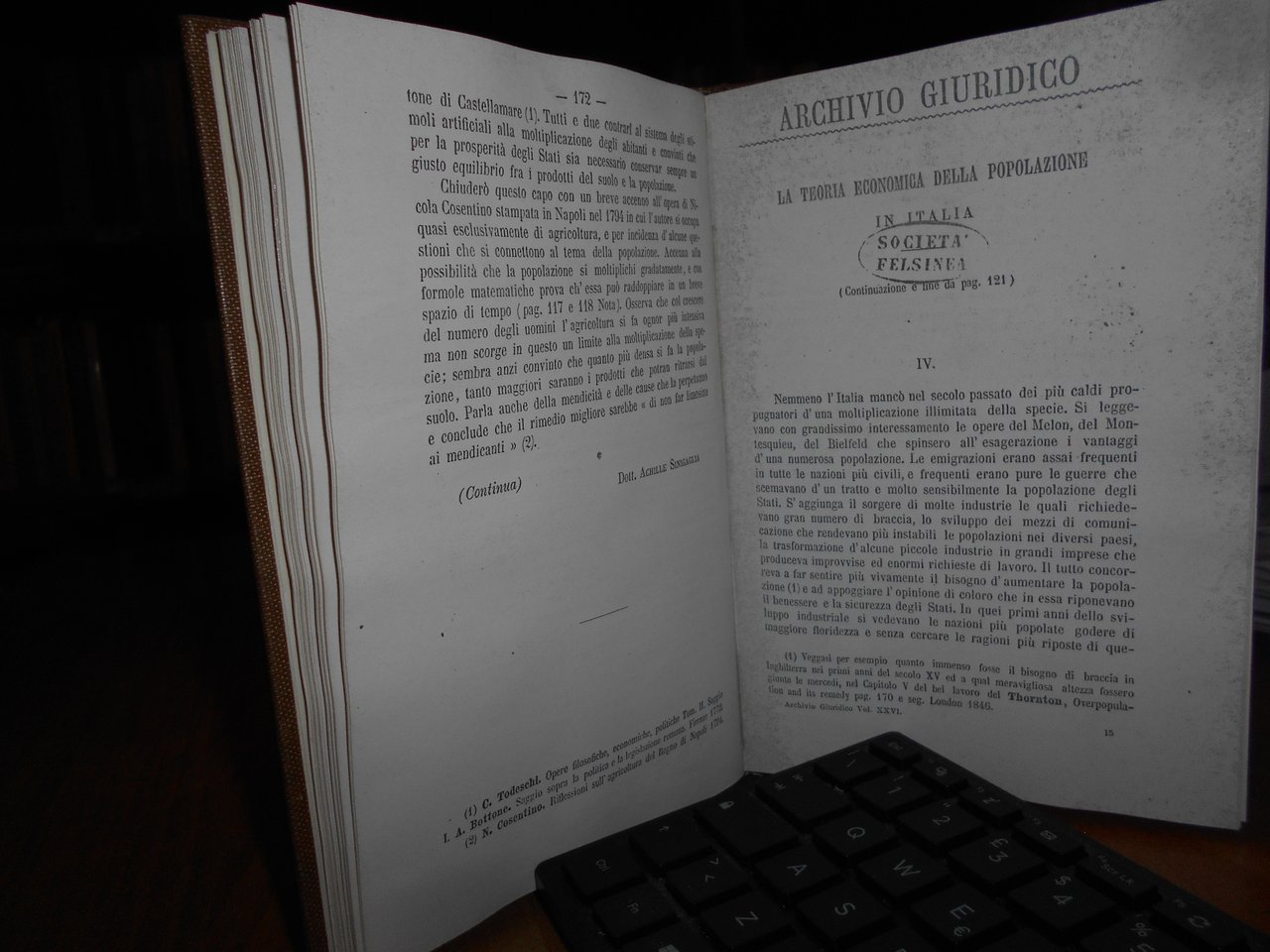 (Economia) Achille Sinigaglia. La Teoria Economica della Popolazione in Italia. In-8°. tela con titolo in oro entro tassello al dorso. Archivio Giuridico, vol. XXVI, pp. 121-172; 215-267. Ottimo esemplare. Copia anastatica. Uff. B - III - 3