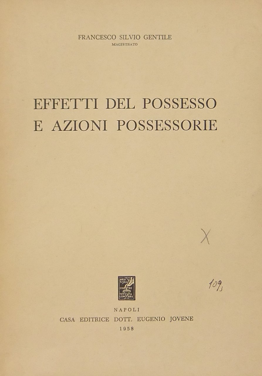Effetti del possesso e azioni possessorie | Libri antichi e moderni | Gentile Francesco Silvio