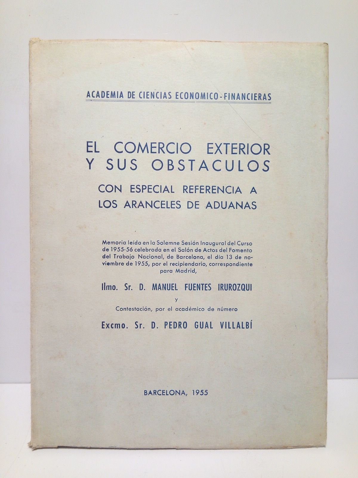 El comercio exterior y sus obstáculos con especial referencia a los aranceles de aduanas (Memoria leída en la Solemne Sesión Inaugural del Curso de 1955-56 celebrada en Fomento del Trabajo Nacional. CONTESTA: Pedro Gual Villalbí) | Libri antichi e moderni | Fuentes Irurozqui, Manuel, Y (Contesta) Pedro Gual Villalbí