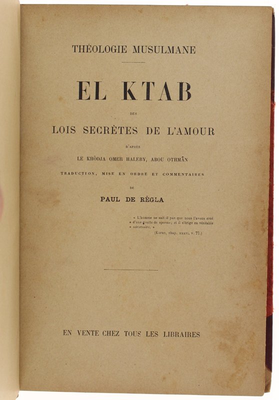 EL KTAB des Lois secrètes de l'amour d'après le Khodja, Omer Haleby, Abou Othman. THEOLOGIE MUSULMANE. | Libri antichi e moderni | De Régla Paul (Soins De)