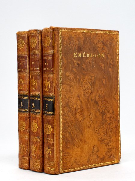 Avec 14 figures, 3 vol. in-8 reliure de l'époque pleine basane racinée, supra libris "Emerigon", Paris, An VI, 1798, 4 ff., XIX-375 pp. avec 4 figures ; 393 pp. avec 9 figures hors texte (et 2 figures rajoutées) : 2 ff., 388 pp. avec 1 figure Exemplaire bien complet des 14 figures hors texte. Etat satisfaisant (restaurations en mors et coiffe, deux figures hors texte extraites d'une autre édition insérées dans l'ouvrage). Cohen, II, 993