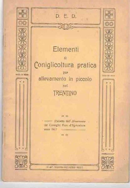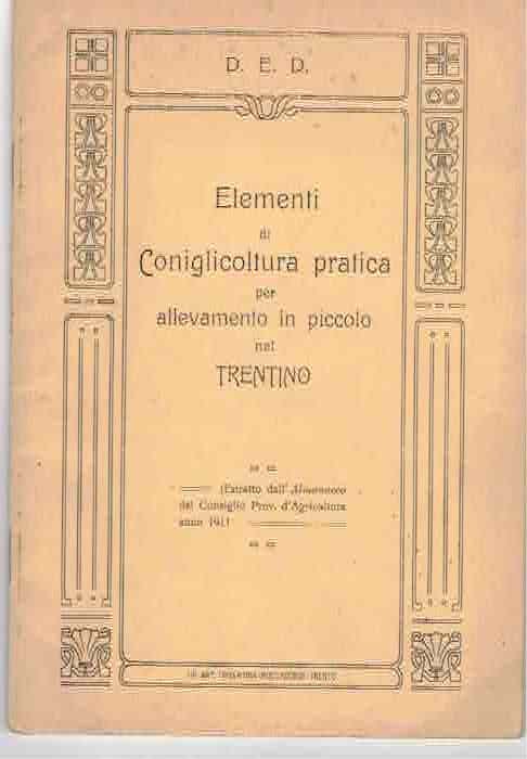 Elementi di coniglicoltura pratica per allevamento in piccolo nel Trentino. | Libri antichi e moderni |