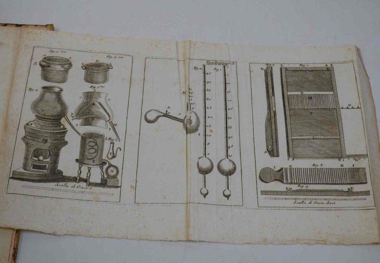 Cm. 25, pp. xii, 348. Con 2 tavole f.t. più volte ripiegate. La prima con figure incise, la seconda è una tabella "ad uso del commerzio delle acquevite". Legatura coeva in mezza pergamena. Fioriture a tratti piuttosto accentuate, peraltro discreta conservazione. Opera che contiene: "...tutte le operazioni fondamentali di quest'Arte... i principi fondamentali di molte arti dipendenti dalla Farmacia, come quei dell'Arte del Confettiere e quei della preparazione delle Acque Odorifere e dei Liquori da tavola...".