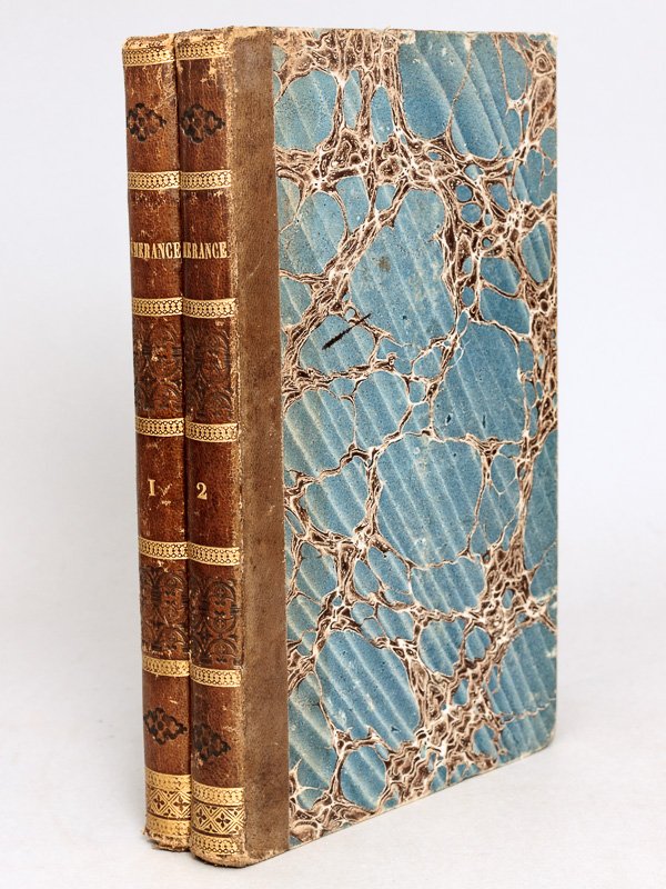 2 vol. in-8 reliure de l'époque demi-veau brun, reliure de l'époque de style romantique, Librairie de Charles Gosselin, Paris, 1842, ; 2 ff., 303 pp., 1 f. ; 2 ff., 316 pp. et 1 f. n. ch. Bon état (petit frott. en coiffes, bon exemplaire par ailleurs) pour cette belle édition originale du roman de Virginie Ancelot (1792-1875), en reliure du temps. Peintre et femme de lettres, Mme Ancelot accueillit dans son salon les écrivains célèbres du temps : Hugo, Stendhal, Musset, Lamartine, Chateaubriand, Vigny, Mérimée furent ses hôtes dans son salon de l'Hôtel de la rue La Rochefoucauld-Liancourt