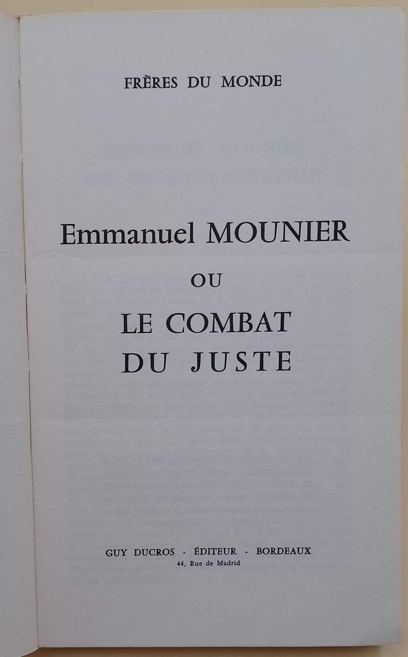 EMMANUEL MOUNIER OU LE COMBAT DU JUSTE(1968) | Libri antichi e moderni | Freres Du Monde