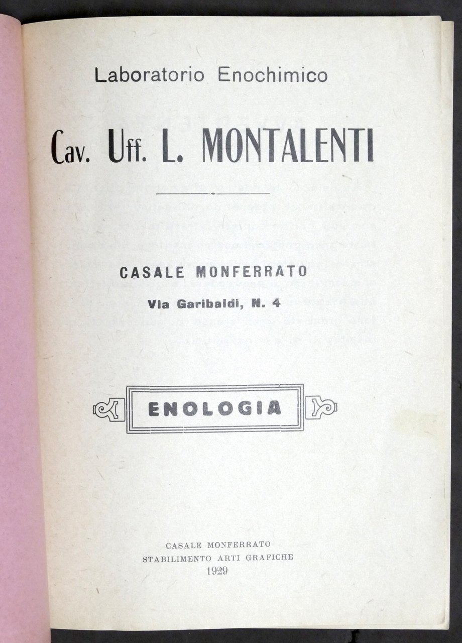 Enologia - Laboratorio Enochimico L. Montalenti - Casale - 1^ ed. 1929
