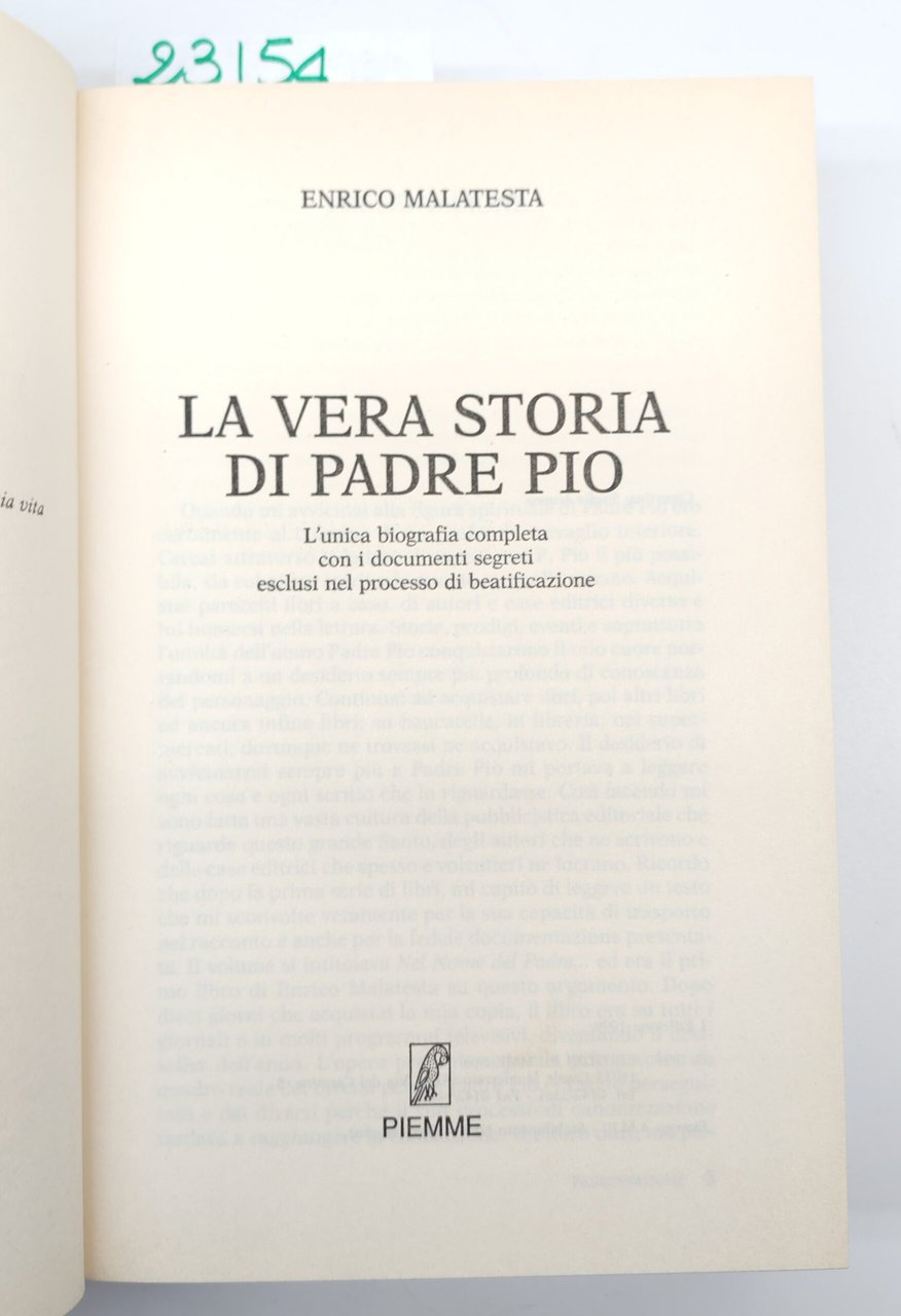 Enrico Malatesta La vera storia di Padre Pio Piemme 1° edizione 1999 | Libri antichi e moderni | Enrico Malatesta