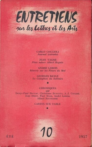 Subervie 1957 Rodez, Entretiens, Eté 1957. N° 10 de cette revue dirigée par Jean Subervie. 60 pages. Bon état