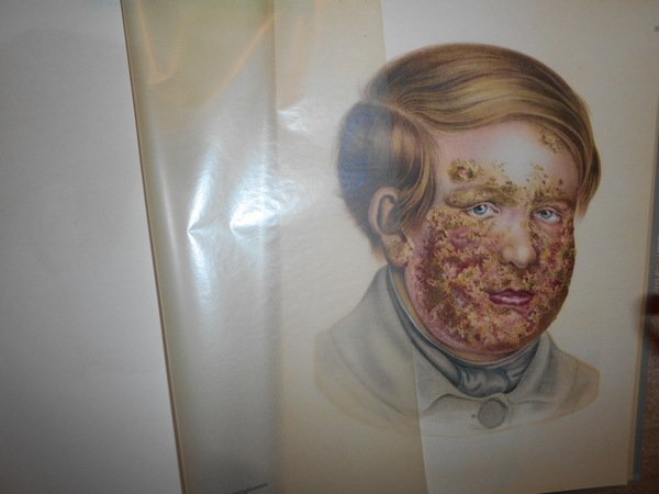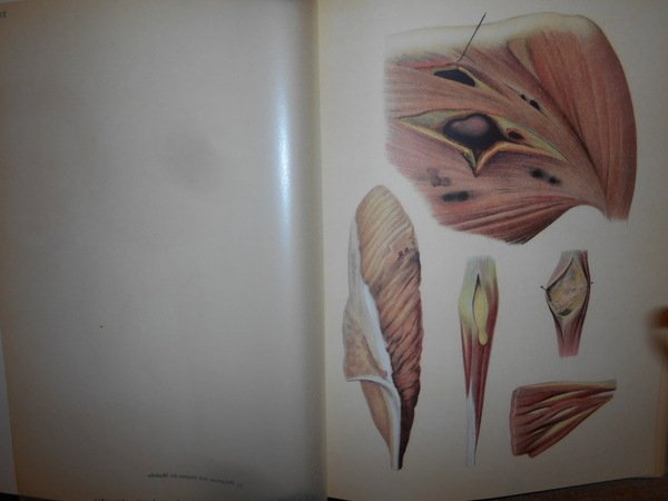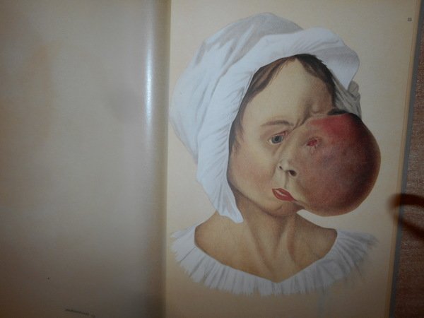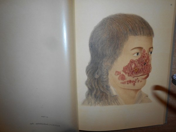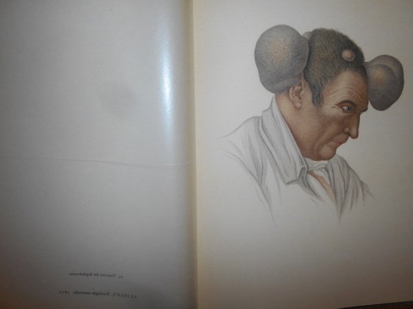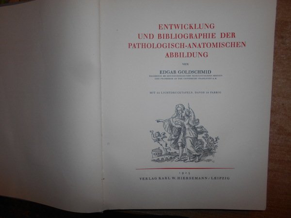 Goldschmid, Edgar. Leipzig, Verlag Karl W. Hiersemann, 1925. Entwicklung und Bibliographie der Pathologisch-Anatomischen Abbildung. In-4°, tela edit. con titoli in rosso sul piano anteriore e al dorso. 301, (2) pp. con 44 fantastiche tavole la maggior parte a colori protette da veline trasparenti fuori testo. Punto di riferimento-pubblicazione estremamente importante in medicina, concentrandosi sull'importanza dell'illustrazione del colore nella diagnostica dermatologica. [Garrison & Morton's Medical Bibliography elenca questa pubblicazione al n. 2316. "Traccia lo sviluppo dell'illustrazione anatomica patologica e include una bibliografia cronologica di tutte le pubblicazioni importanti conosciute da Goldschmid contenenti illustrazioni di condizioni patologiche e un indice di artisti, stampanti ed editori"] La pubblicazione elenca tutto ciò che è importante per Goldschmid, da Teofilo Boneto a Jan van Heekeren, Conrad Lycosthenes a Caspar Bauhin, Giovanni Andrea della Croce a Samuel Thomas Soemmering, Matthew Baillie a Johann Carl Sybel e Michele Vincento Malacarne ecc. ecc. ecc. Bell' esemplare in edizione originale. Uff. D - II - 6