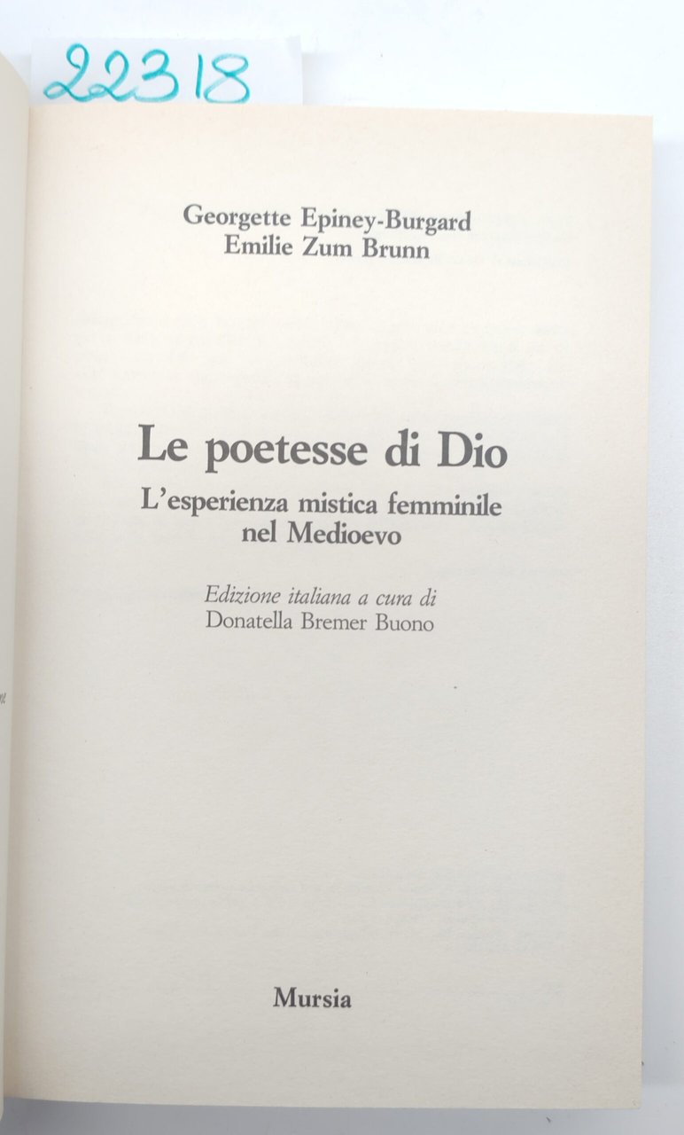Epiney-Burgard, G.-Zum Brunn E., Le poetesse di Dio Mursia 1994 | Libri antichi e moderni |