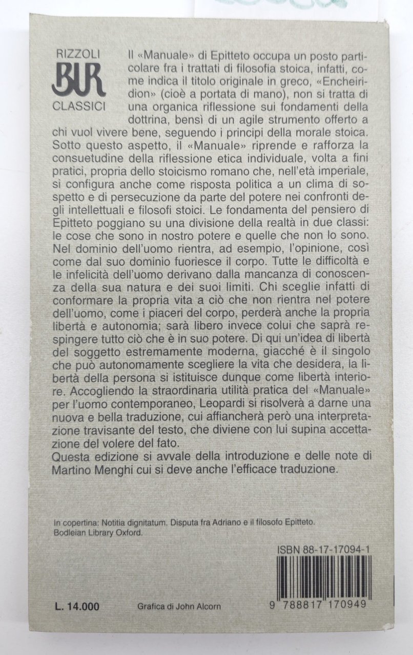 Epitteto Manuale BUR Rizzoli 1° edizione 1996 | Libri antichi e moderni | Epitteto