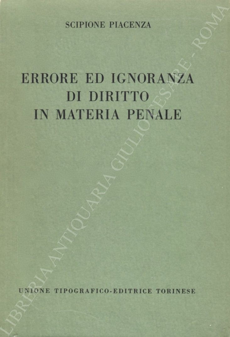 Errore ed ignoranza di diritto in materia penale | Libri antichi e moderni | Piacenza Scipione