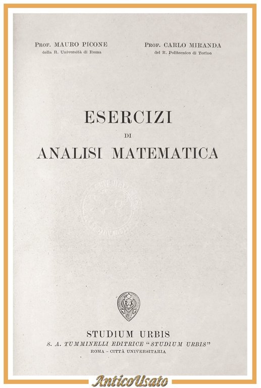 ESERCIZI DI ANALISI MATEMATICA di Picone e Miranda Studium Urbis libro manuale | Libri antichi e moderni |