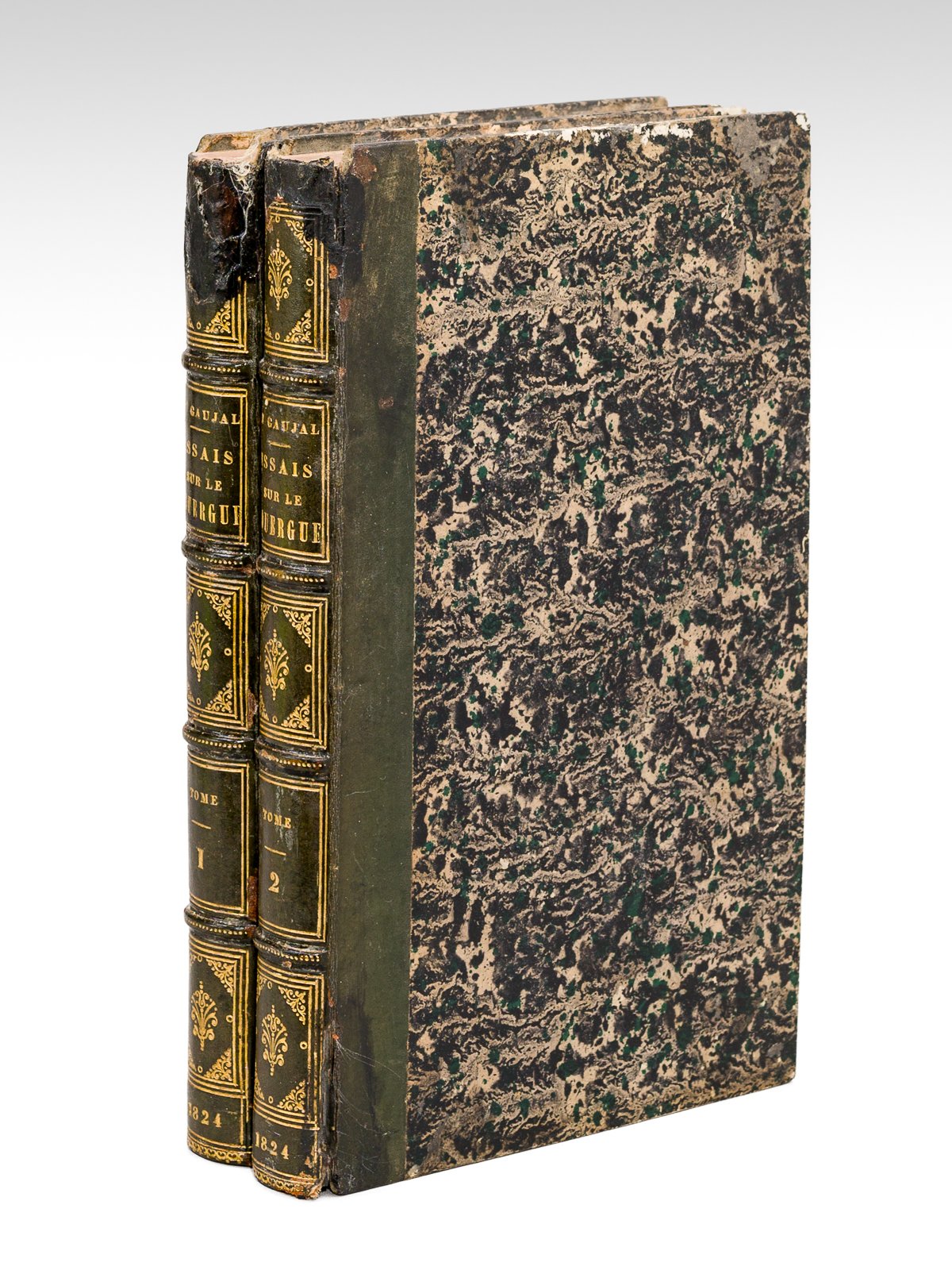 2 vol. in-8 reliure demi-veau vert, dos à 4nerfs dorés orné, Chez Barbou, Limoges, 1824 et 1825, 1 f., XVI pp., 1 f. n. ch., 448 pp. et 1 f. n. ch. ; 2 ff., 503 pp. Rare exemplaire de l'édition originale des "Essais historiques sur le Rouergue", bien complets en 2 volumes. A ne pas confondre avec les "Etudes historiques sur le Rouergue" du même auteur, parues en 1858 et également disponibles dans notre catalogue. Etat satisfaisant (forts accrocs avec manques en coiffes sup., bon état par ailleurs) pour cet ouvrage très peu commun. Prix en l'état