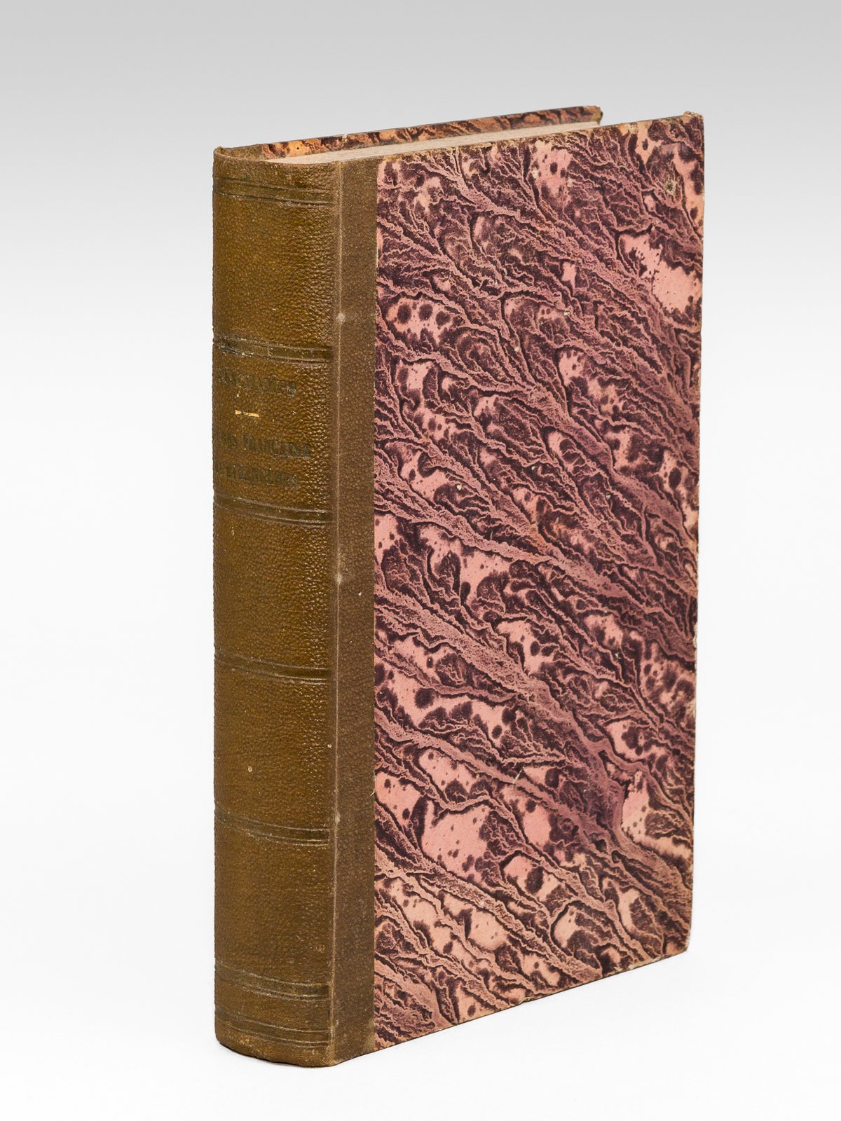 1 vol. in-8 reliure de l'époque demi-percaline marron, Etudes françaises et étrangères, par M. Emile Deschamps, Urbain Canel, Paris, 1828, LXI pp., 1 f., 317 pp. et 1 f. n. ch. [ Suivi de : ] Dernières Paroles. Poésies. Ebrard Libraire, Editeur, Paris, 1835, 2 ff., 358-IV pp. Remarquable exemplaire, réunissant les éditions originales dédicacées des "Etudes françaises et étrangères" d'Emile Deschamps et des "Dernières Paroles", recueil de poésie de son frère Antoni. "L'un des chefs du romantisme", Emile Deschamps (1791-1871) faisait avec son frère Antony (1800-1869) les honneurs des réunions pleines d'ardeur du salon dans lequel leur père accueillait vers 1820 les poètes nouveaux Lamartine, Victor Hugo, Alfred de Vigny et Charles Nodier. Chacun des deux titres est dédicacé par son auteur à un M. Stephen. A propos du premier titre Escoffier précise : "Edition originale (premier tirage) des poèmes d'Emile Deschamps. La préface sur le romantisme n'a pas été réimprimée dans l'édition des Poésies, de 1841. Le manifeste d'Emile Deschamps est remarquable de bon sens et de mesure et il est pour la poésie le pendant de ce qu'était au même moment celui de Victor Hugo dans sa préface de Cromwell" (Escoffier, 679). Cette préface reste un texte essentiel pour l'histoire de la littérature romantique française. Bon état (sans le feuillet d'errata signalé par Vicaire dans le premier titre, bon exemplaire par ailleurs). Vicaire, III, 202 et III, 200