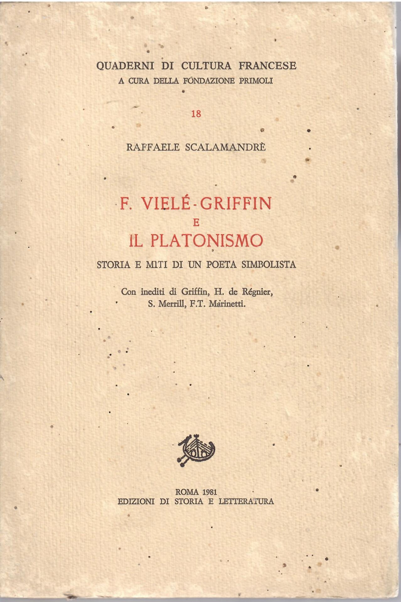 F. VIELE - GRIFFIN E IL PLATONISMO | Libri antichi e moderni | Scalamandre Raffaele