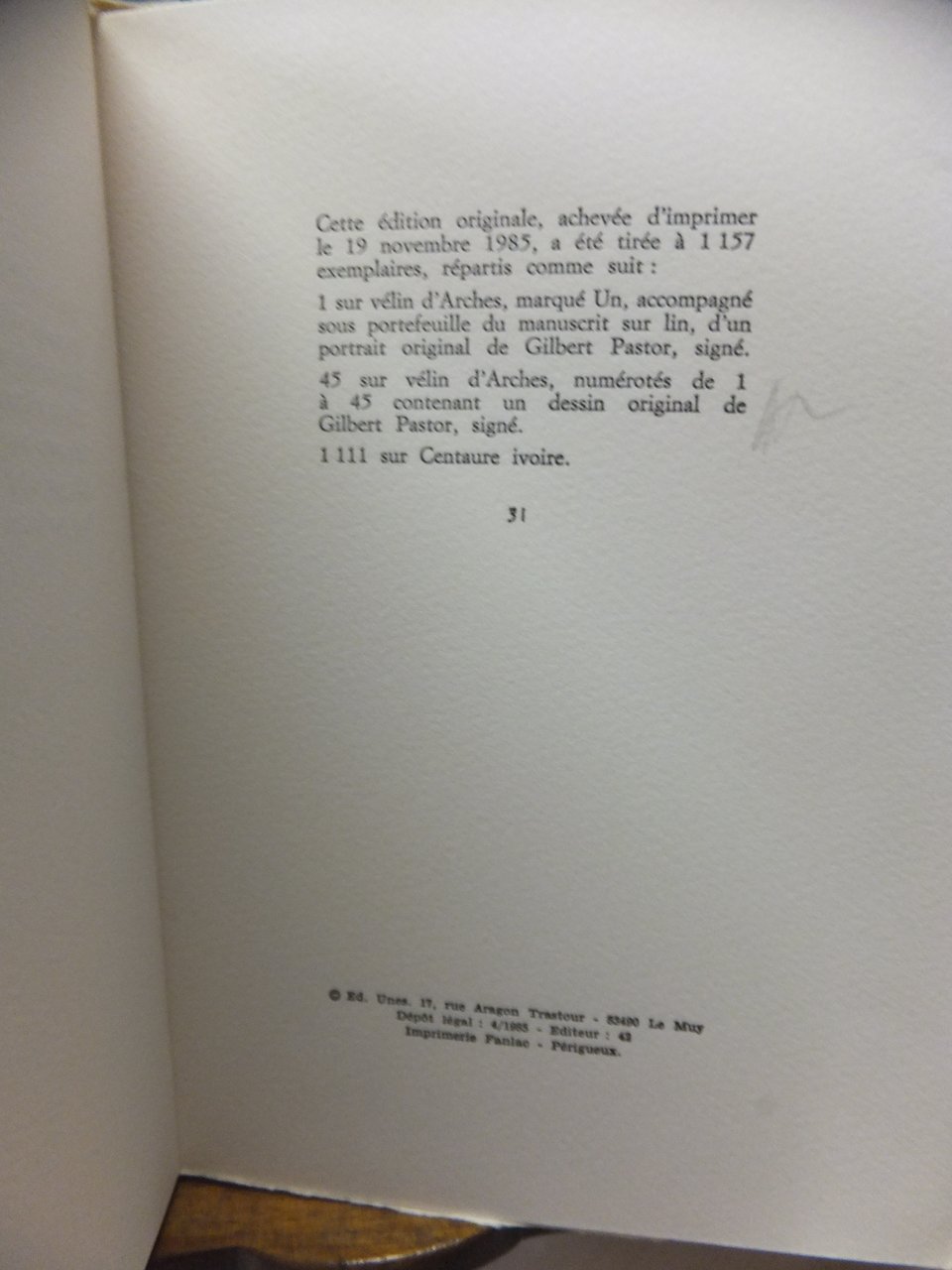 EDITIONS UNES 1985 - 6 SEDICESIMI SCIOLTI PP. 81 + 15- TIRATURA LIMITATA, ESEMPLARE 31 - BUONE CONDIZIONI, BRUNITURA AL DORSO/PIATTI.