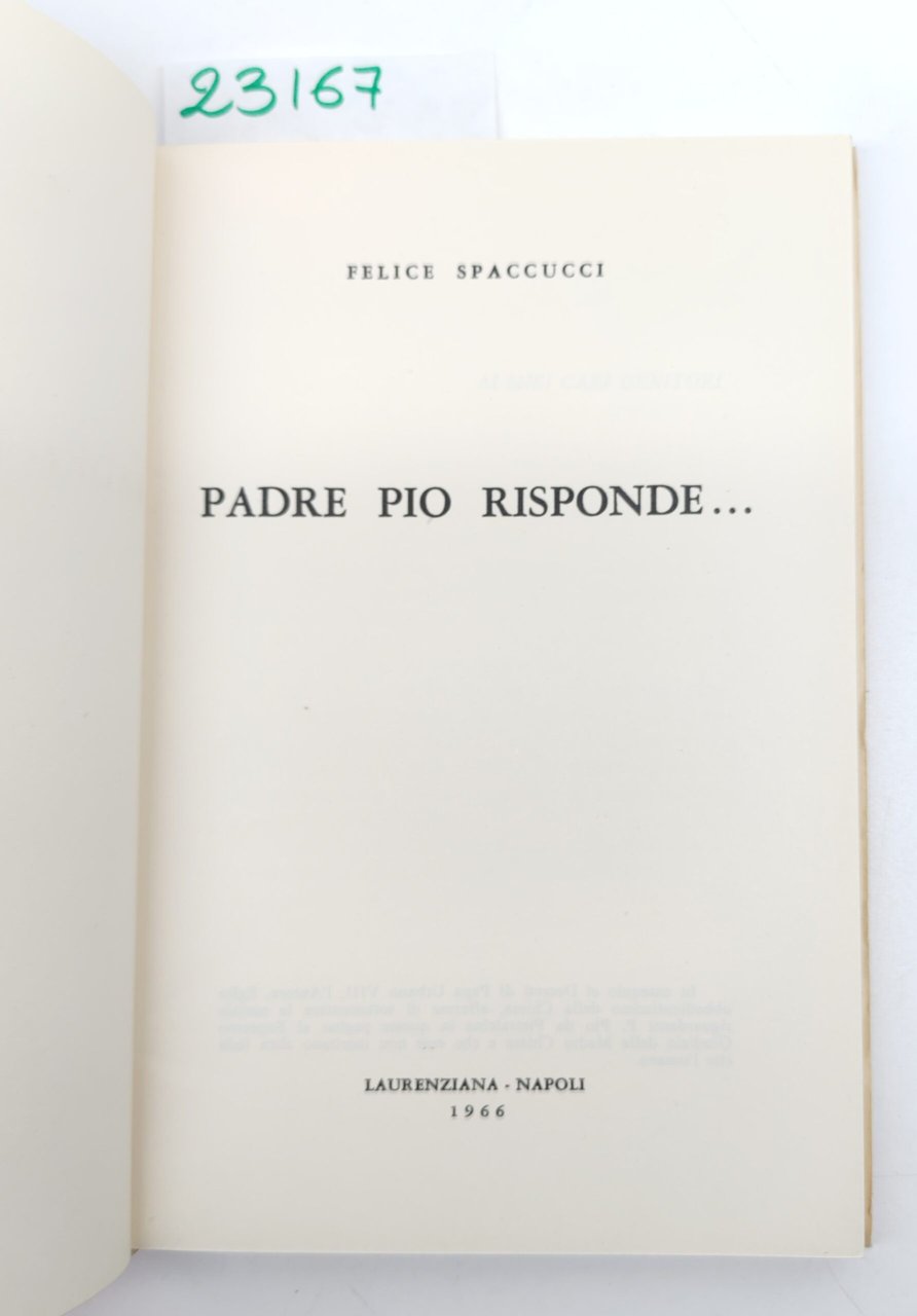 Felice Spaccucci Padre Pio risponde Laurenziana 1966 | Libri antichi e moderni | Felice Spaccucci