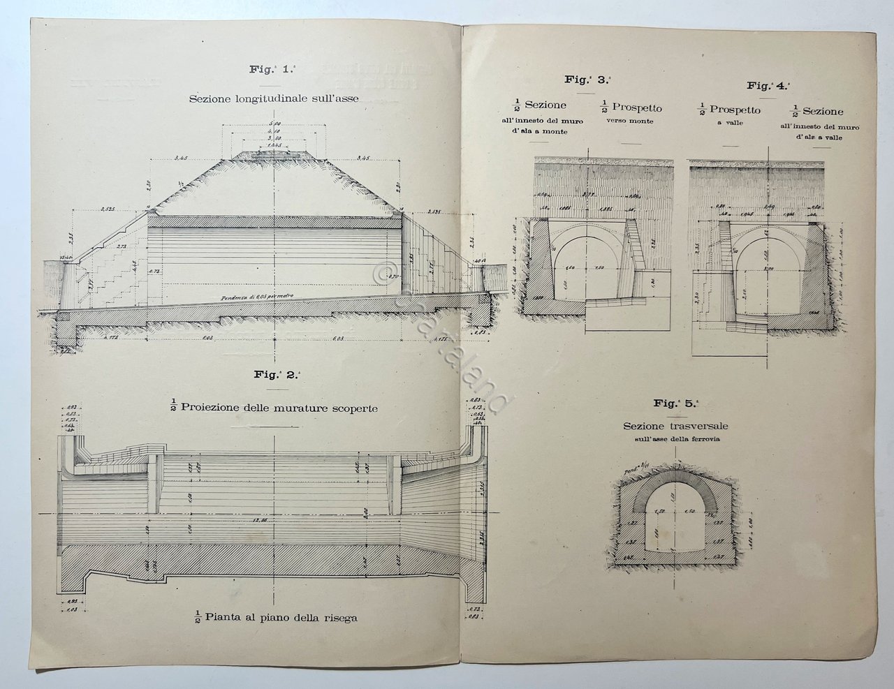Modalità del Corpo Stradale e delle Opere d'Arte - Ponticello in terreno a piccola pendenza Tav. N. VII - fine '800 Testo in lingua italiana. Pagine 4 con 5 Fig. Copertina morbida. Condizioni molto buone con piccoli segni del tempo.