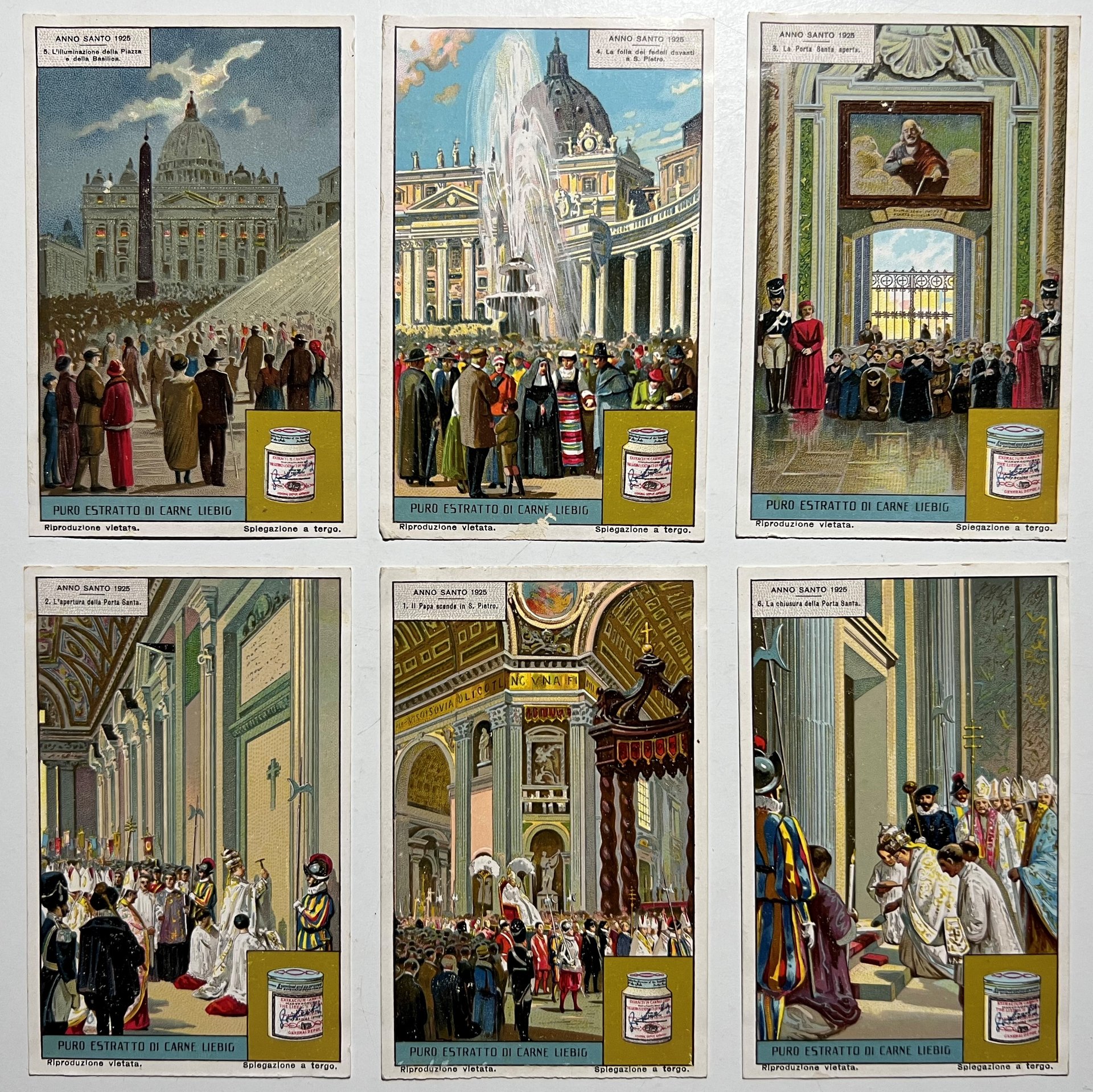 Figurine LIEBIG - Anno Santo 1925 - Rif. N° 1164 - 6 Figurine La numerazione fa riferimento al Catalogo Sanguinetti. Condizioni molto buone con piccoli segni del tempo come da foto. FOTOGRAFIE DEL RETRO A RICHIESTA.