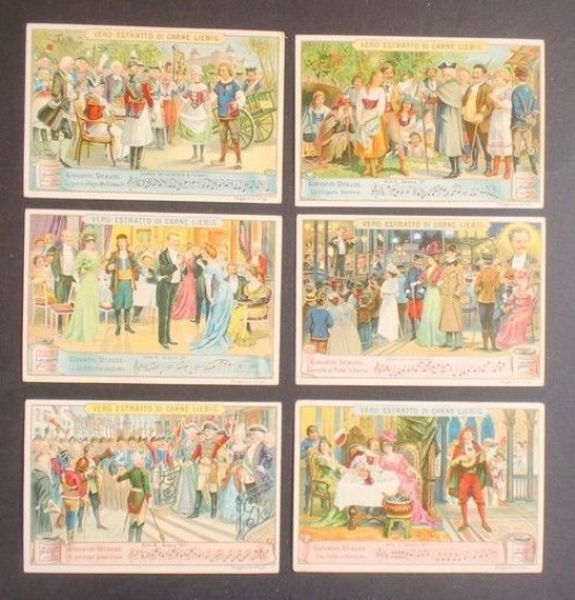 Figurine LIEBIG - Giovanni Strauss - Rif.  N° 687 - 6 figurine La numerazione fa riferimento al Catalogo Sanguinetti - FOTOGRAFIE DEL RETRO A RICHIESTA. Per appassionati e collezionisti