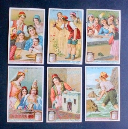 Figurine LIEBIG - Viaggio di Gulliver a Brobdingnag - Rif.  N° 1095 - 6 figurine La numerazione fa riferimento al Catalogo Sanguinetti - FOTOGRAFIE DEL RETRO A RICHIESTA. Per appassionati e collezionisti