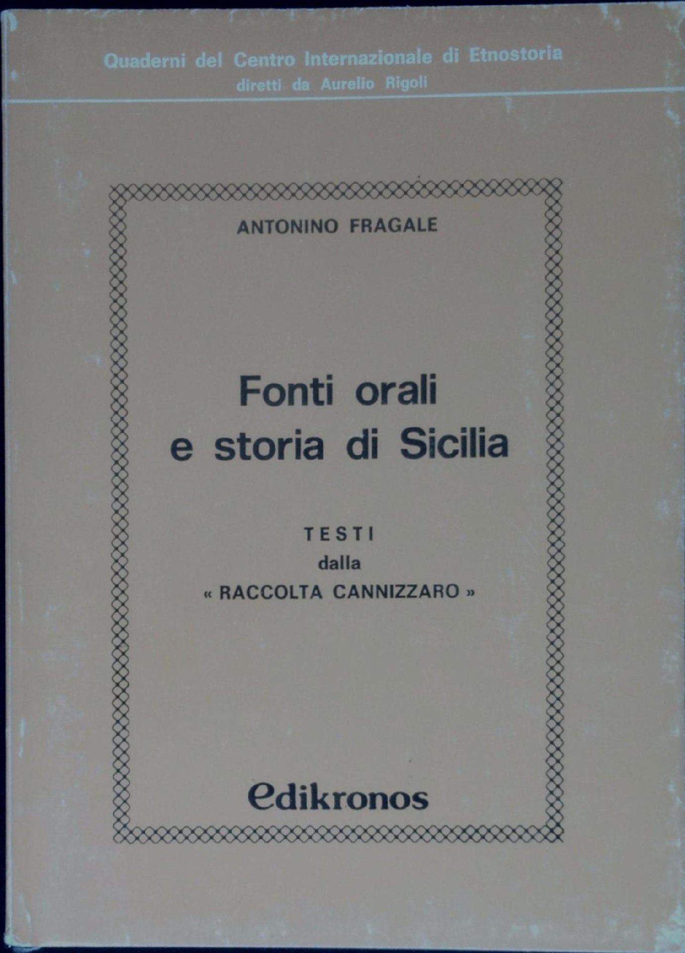 Antonino Fragale Fonti orali e storia di Sicilia : testi dalla "Raccolta Cannizzaro". , Edikronos 1983, 18 123 p. (39764)