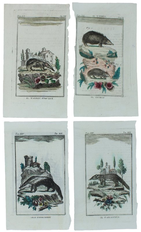 (Codice SN/0672) Serie di 4 graziose tavole originali in rame, sciolte (cm 17,5x11 circa), acquerellate a mano. Ciascuna illustra una diversa specie. Alleghiamo fotocopia del frontespizio di uno dei tomi. Ottimo stato. ~~~ SPEDIZIONE IN ITALIA SEMPRE TRACCIATA