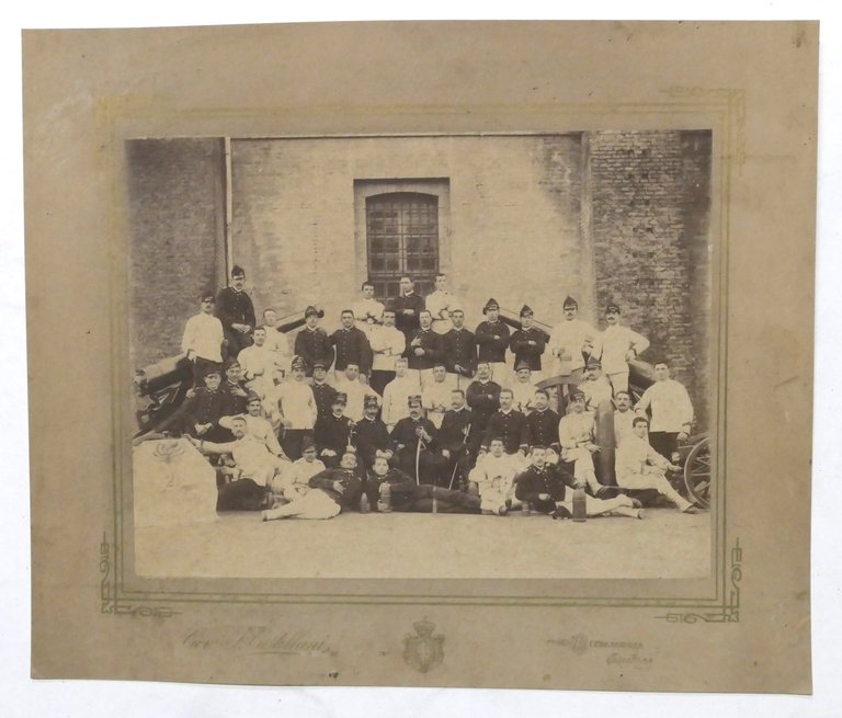 Fotografia Caserma Valfrè di Alessandria - Gruppo di Militari e Ufficiali - fine '800 Dimensioni foto: 22 x 29 cm ca. Dimensioni cartoncino rigido: 33 x 40 cm ca. Condizioni generali buone.