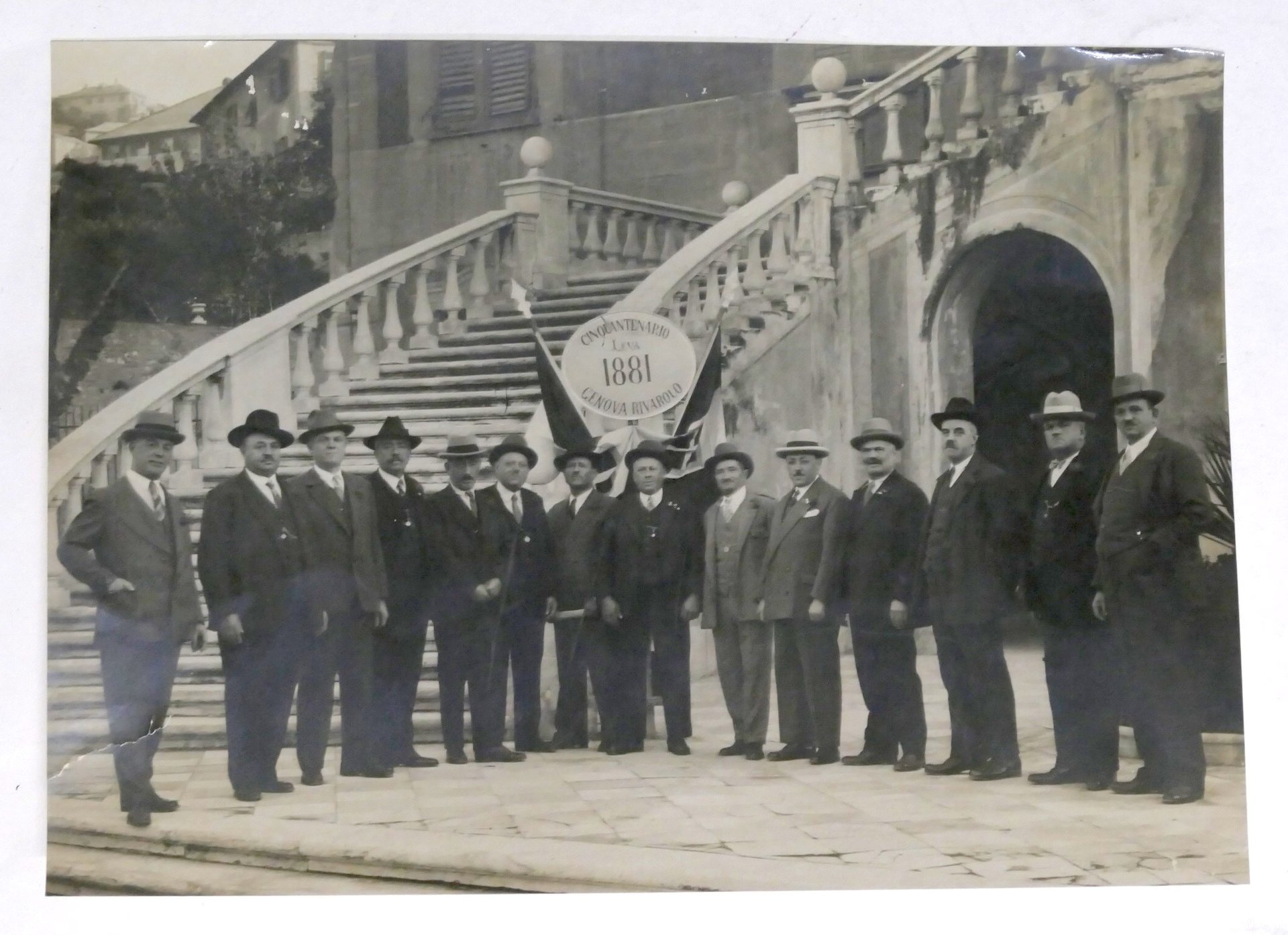 Fotografia Cinquatenario Leva 1881 - Genova Rivarolo - Anno 1931 Dimensioni: 20 x 28 cm ca. Condizioni generali buone. Piccolo srappo al bordo sinistro.