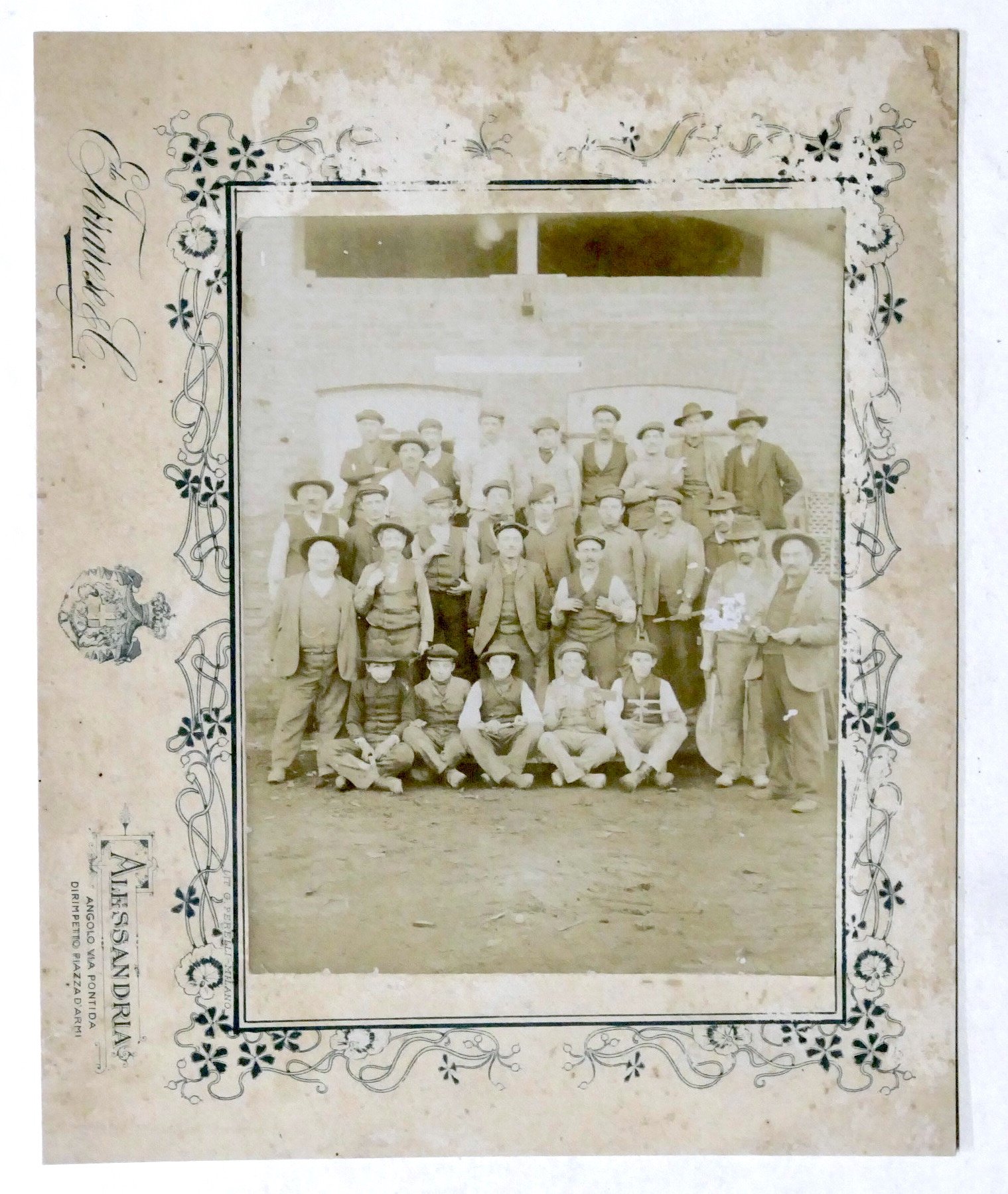 Fotografia ritratto di gruppo Società Operaia di Spalto Gamondio (Aessandria) - fine '800 Dimensioni foto: 13 x 16 cm ca. Dimensioni cartoncino rigido: 20 x 24 cm ca. Buone condizioni generali. Piccoli segni del tempo come da foto.