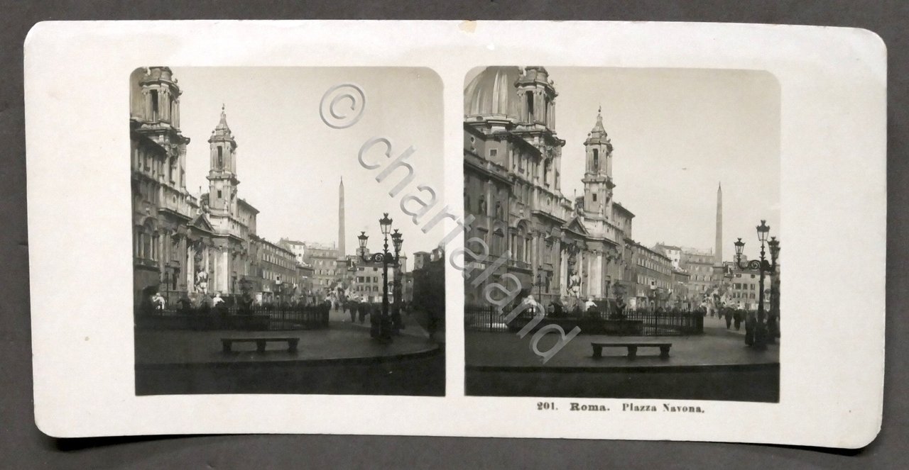 Fotografia stereoscopica - Roma - Piazza Navona - 1906