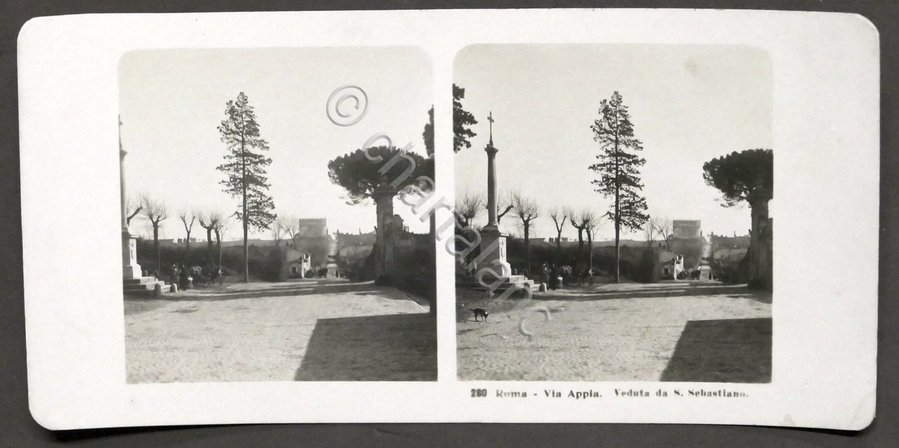 Fotografia stereoscopica - Roma - Via Appia - Veduta da S. Sebastiano - 1908 | Libri antichi e moderni |