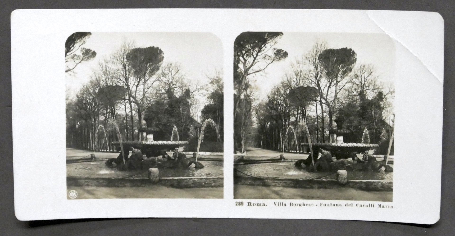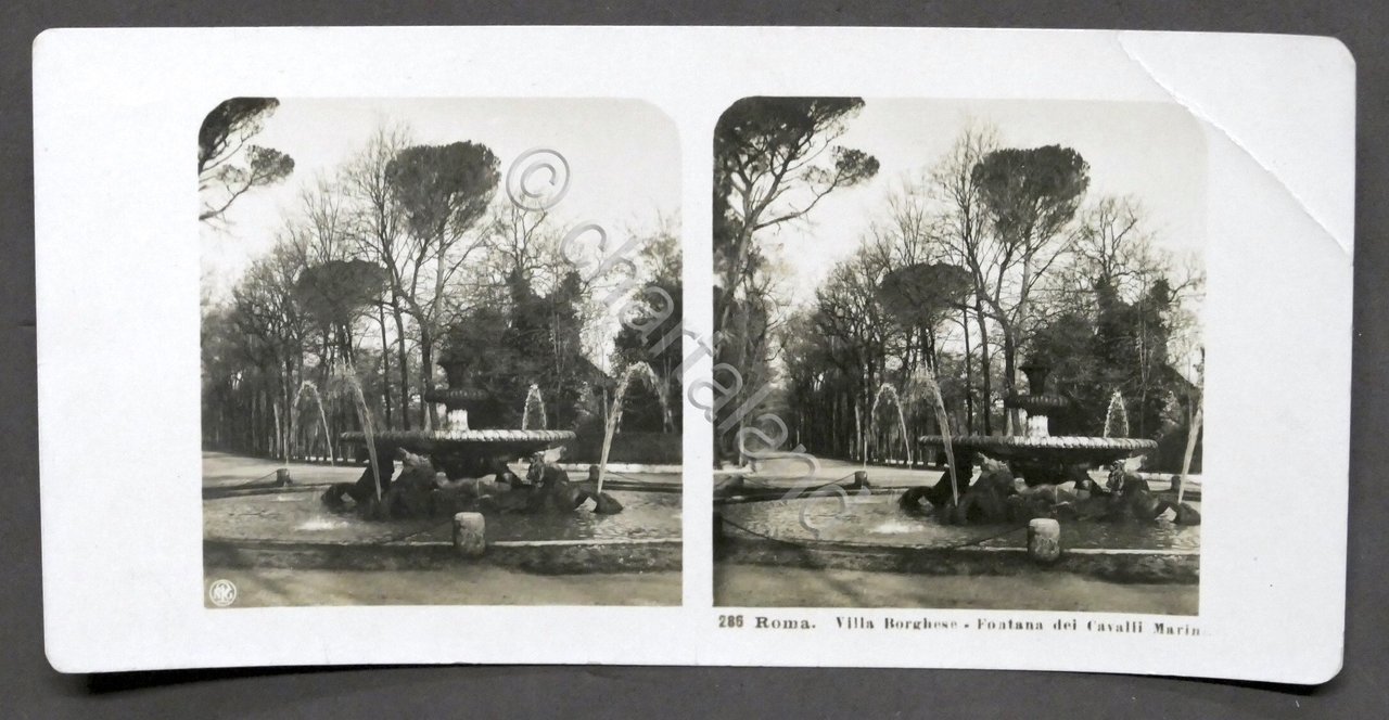Fotografia stereoscopica - Roma Villa Borghese - Fontana dei Cavalli Marini 1906