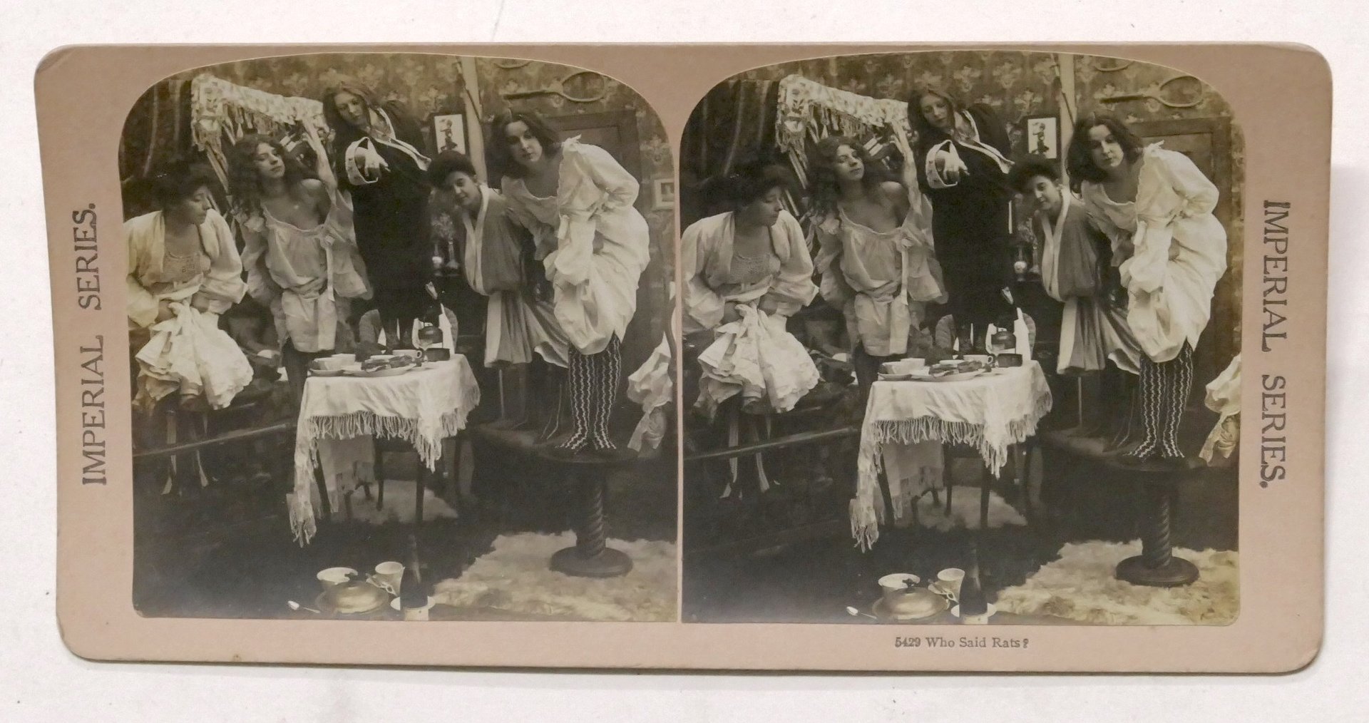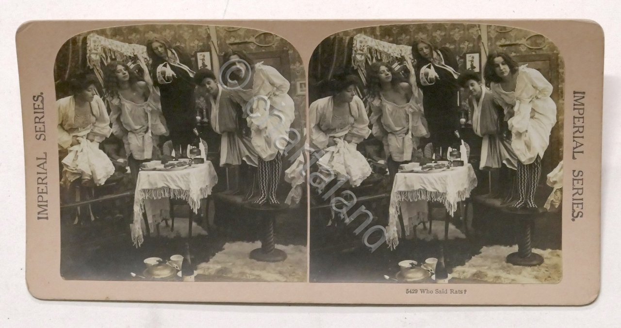 Fotografia stereoscopica Ragazze, attenzione ai topi! - Who said rats? 1900 ca. | Libri antichi e moderni |