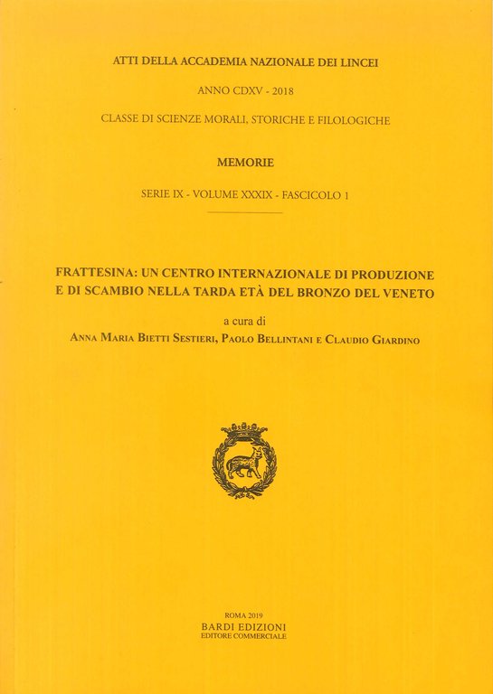 A cura di Claudio Giardino, Paolo Bellintani e Anna Maria Bietti Sestieri. Roma, 2019; br., pp. 396, cm 17x24. (Atti della Accademia Nazionale dei Lincei. Memorie. Classe di Scienze Morali, Storiche e Filosofiche. Serie IX. 39. I).